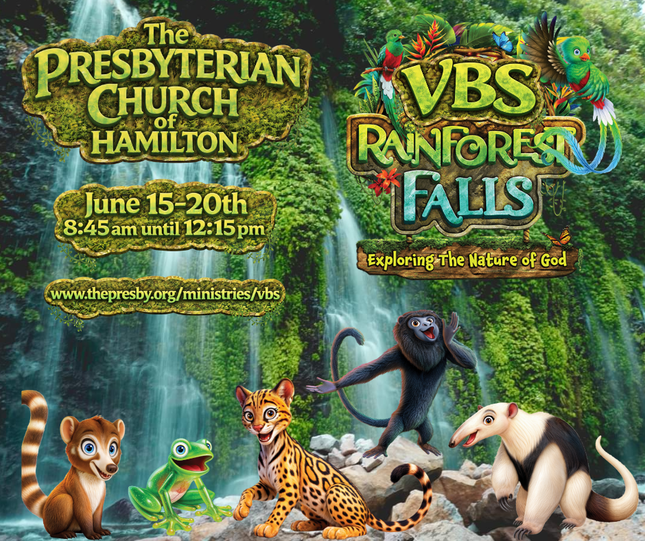 2026 Vacation Bible School is Rain Forest Falls. Save the Date for June 15th-20th.